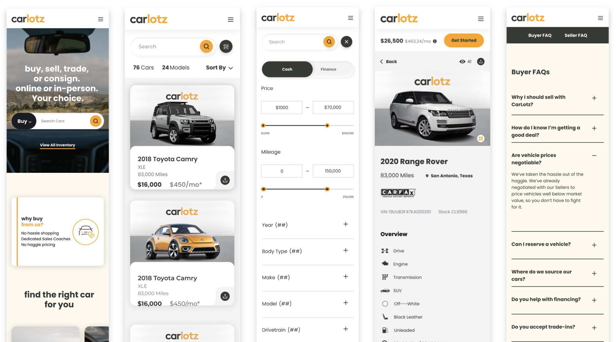 Worked on a small team of three designers to create a compelling digital experience for a used-car sales and consignment company